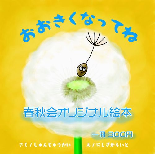 『おおきくなってね』というこの絵本は広島の若手僧侶の会、春秋会(しゅんじゅうかい)が製作したものです。たんぽぽの種の「たねくん」が春の青空へ舞い上がり大冒険する中で、自分にかけられた「おおきくなってね」という願いに出遇っていく物語です。