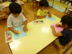 かたつむりを塗ったよ!七夕飾りを飾ったよ!