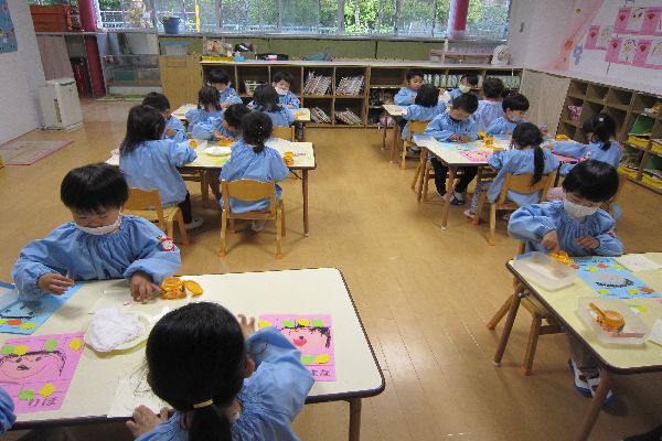 今日は自分の似顔絵を描いたり、あめ玉を交互に貼ってお当番表を作りました☆彡