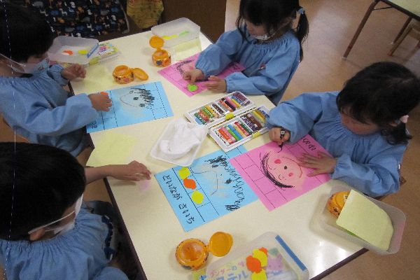今日は自分の似顔絵を描いたり、あめ玉を交互に貼ってお当番表を作りました☆彡