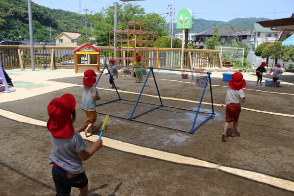 水鉄砲をして楽しく遊びました♪