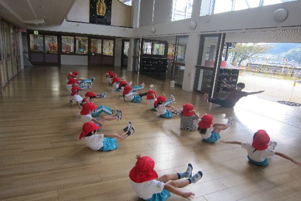 体操教室では飛行機のポーズをしたり