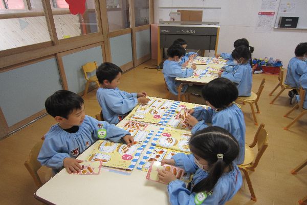 春のお花や虫、シール遊びではパン屋さんになりきって、かごの中にパンを並べて貼りました♪「いらっしゃいませ~!はいっどうぞ」と言いながら貼っていました♡