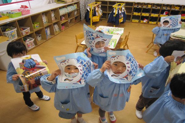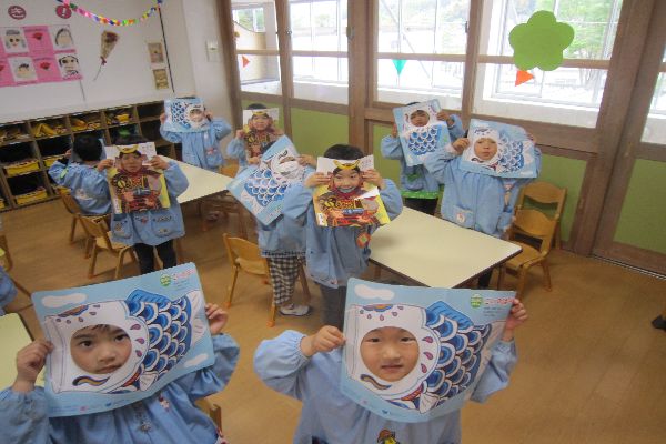 最後はポスターに顔をはめて、こいのぼりに変身しました♪
