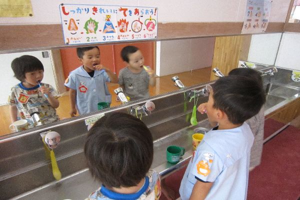 「梅雨が終わると夏が来るね!」「夏といえば…プール、アイス、せんぷうき…花火だね!!」と話をして、今日は2回目の水彩遊びで花火をかきました!