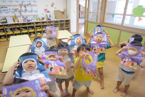 水曜日は誕生日会があり、大きなスクリーンで三匹のこびたのお話を見ました。面白いお話だったね!!8月9月生まれのお友達、お誕生日おめでとう☆★☆