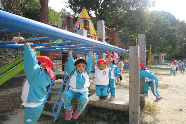 お寺に行った後、公園でたくさん遊びました!どんぐり探しもできたね!