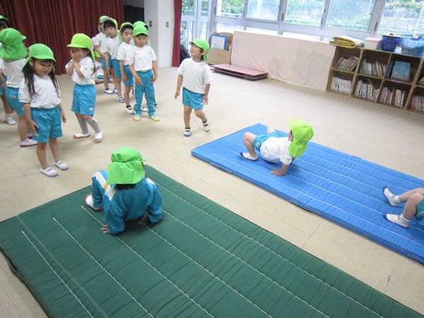 体操教室の様子。マットの上でたくさん頑張りました!