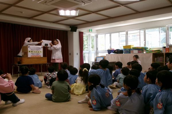 5月生まれの誕生会がありました。みんなで集まって楽しいクッキングを見ました!いろんな料理が出来て楽しかったね♡