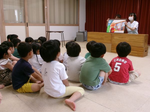 歯科検診と歯磨き教室がありました!紙芝居を読んでくださり、元気な歯でいるためには野菜もしっかり食べるよ!とお話を聞きました。「食べる時は20回噛むのー!?」とよく噛まないといけないことも知りました!