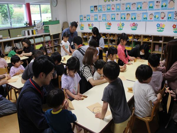 先日の参観日はありがとうございました。新しいクラスにも少しずつ慣れ、のびのびとした姿が見られたのではないかと思います。一緒に製作したのもで遊びながら、素敵な時間になりました。