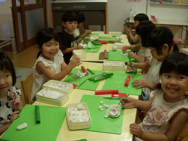 そうめん流しをした後は、粘土遊びでそうめんを作り、もう一度楽しんでいました☆彡