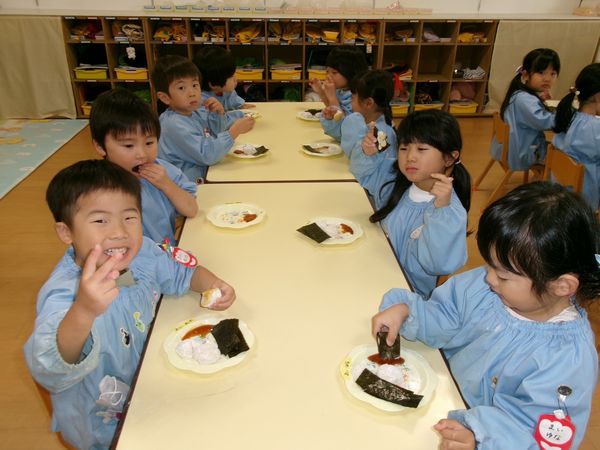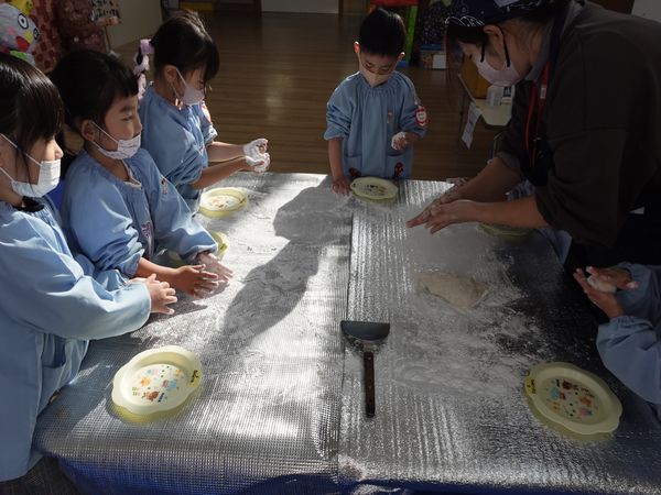 成道会を祝い、みんなでお餅つきをしました。みんなで「よいしょ~!」と餅つきを応援したり、自分の食べる餅を丸めたりしました。お手伝いいただいた地域の方々や保護者の方々、ありがとうございました!