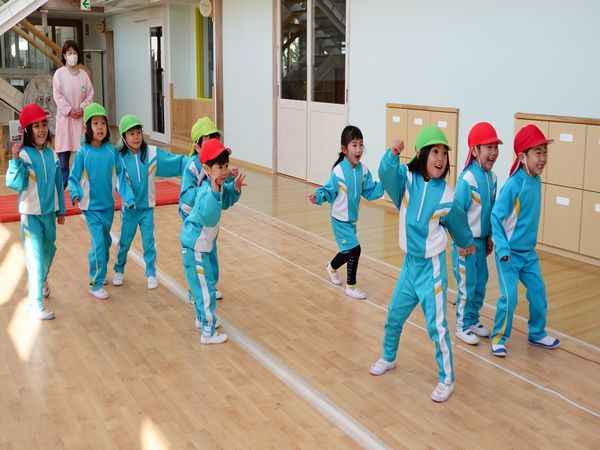 お遊戯会ももうすぐです。お互いにお客さんになって頑張る姿を見ました。みんなにこにこ笑顔で練習を頑張っています。当日が楽しみだね!