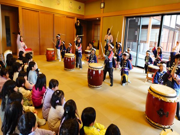 大きなかけ声とともに力強く太鼓をたたく姿がかっこよかったね!最後にはみんなで太鼓をたたいてみました!