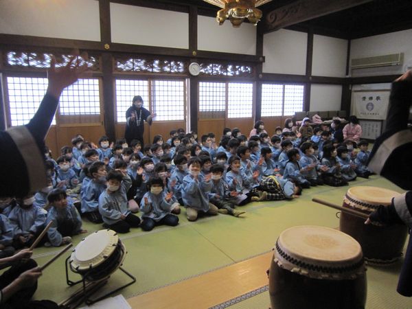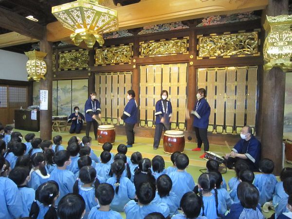 お寺に上がって先生たちの和太鼓の演奏を見ました!