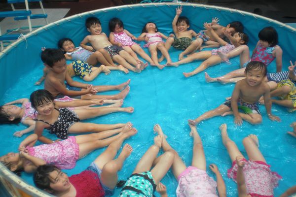 水鉄砲で的あてゲームや水が少なくなくなったプールで寝そべってみたり…たくさんの事をして楽しみました。