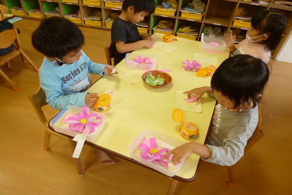 年少の時とは少し作り方が違うコスモスだったけど、みんな頑張って作ることが出来ました!