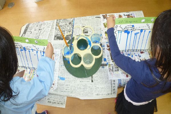 お風呂の水があふれてきたよ! 斜めにするとき、えのぐが流れるのが面白かったみたいで とっても喜んでいました♪
