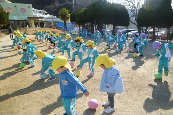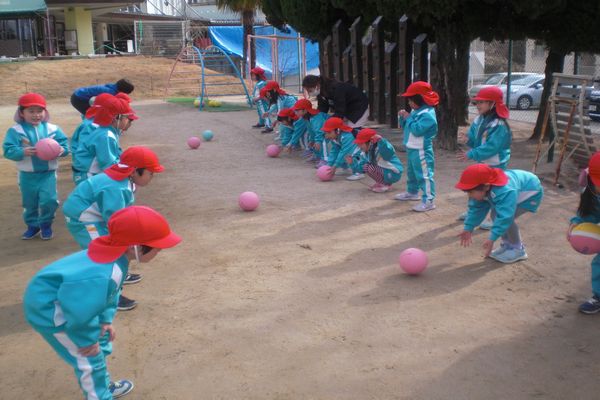 友達とボールを転がしてキャッチをしたり、バウンドさせたりしました。