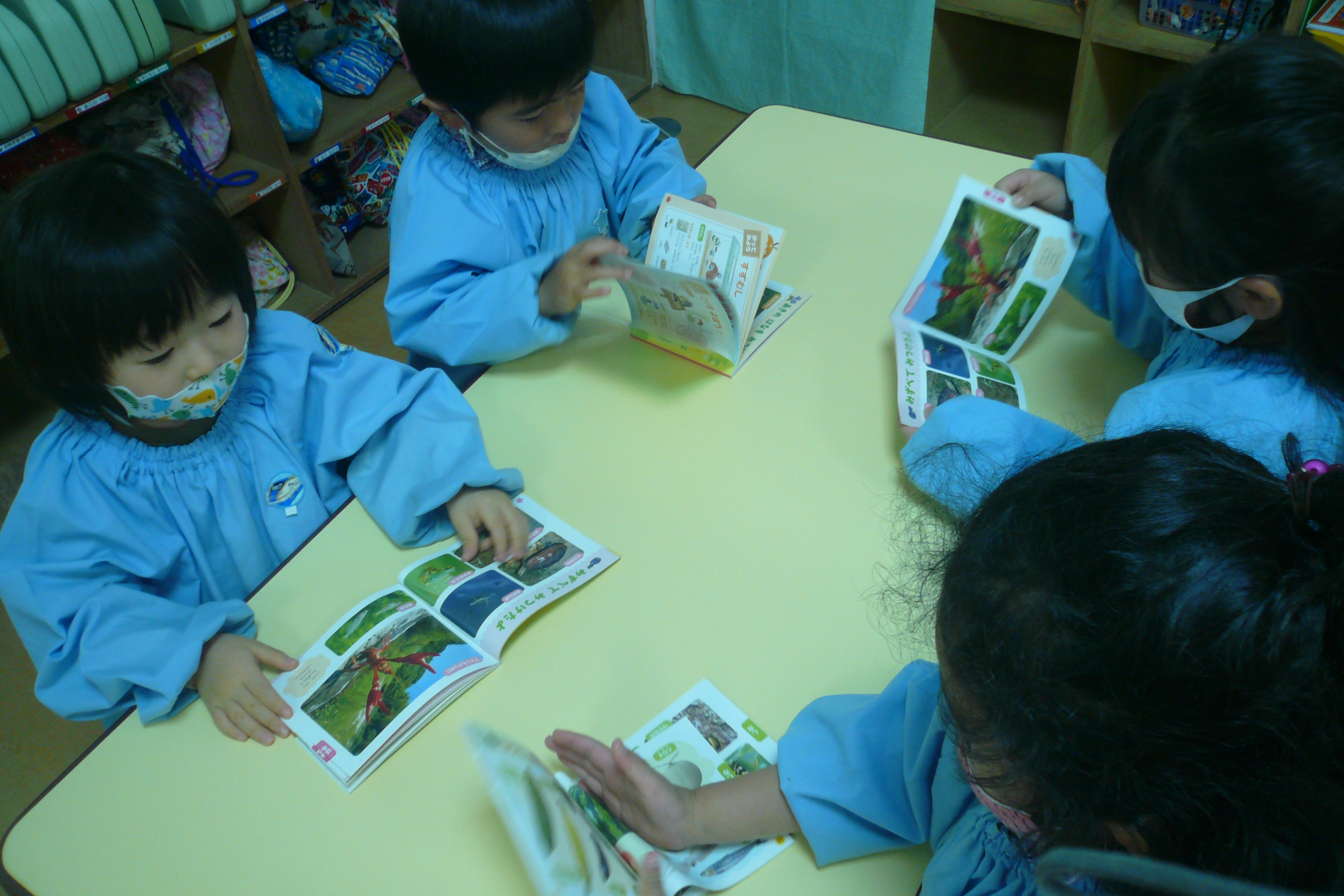 今日はずかんを使って虫さんやお花さんについて調べたよ! 「図鑑にはいろんな事が載っているんだね~」とお友達とお話をしている子もいました! 虫さんやお花さんのいろんな事知れてよかったね!!