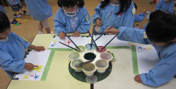 指で広げると花火になるよ」と友達とお話しながら楽しんでいる子も