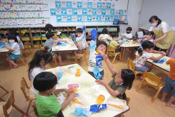じゃ~ん!3つの貝がらをつなげて素敵な飾りができたね!