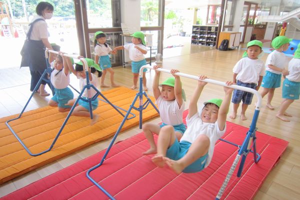 今日の体操教室は、鉄棒でした。 まずは、ぶらさがって『ぶ~らん ぶ~らん』