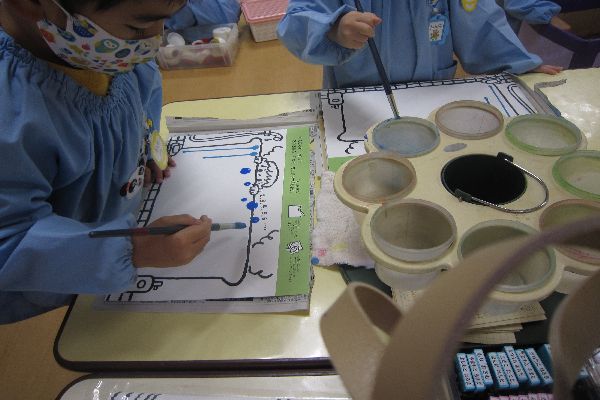 いつもとは違う絵の具の使い方だったのでとっても楽しそうでした☆