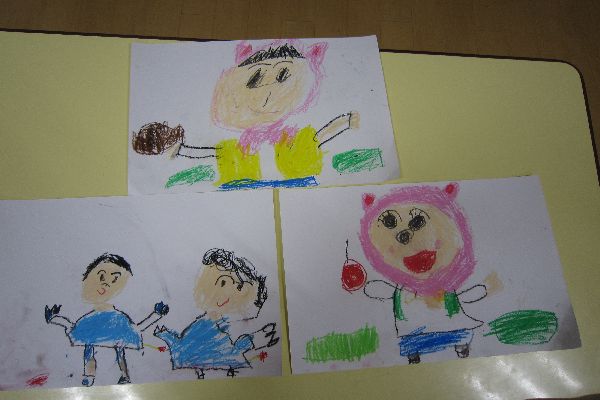 今日はおゆうぎかいを頑張っているところを描きました!!