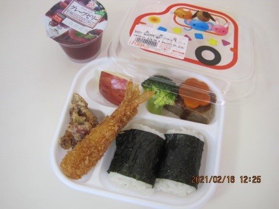 丸美弁当さんの弁当に、デザートのグレープゼリー。そしてお土産に折り紙を
