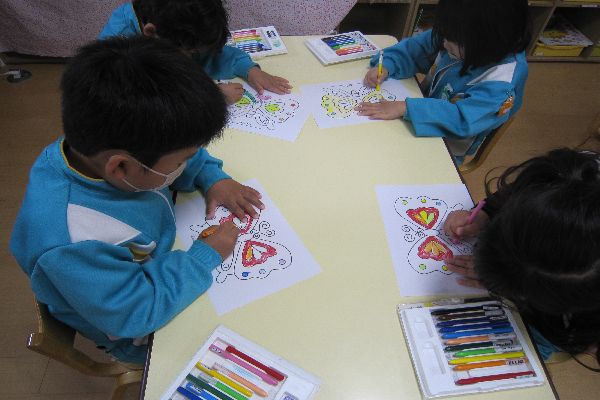 2022/04/18 体操教室、ちょうちょ色塗り