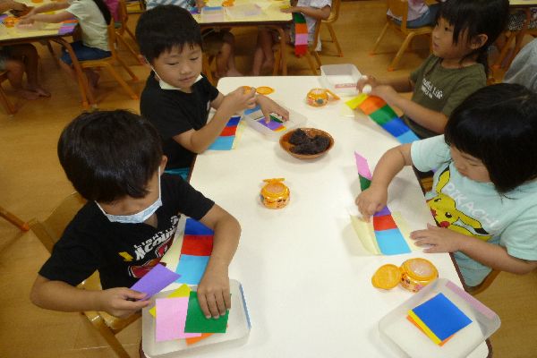 8枚の折り紙を同じ幅で、まっすぐつなげることを意識しながら頑張りました!