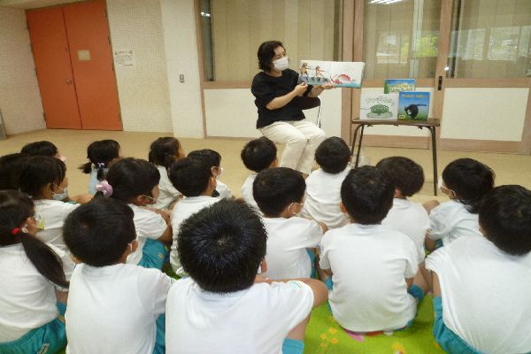 「からだかゆい」「かとりせんこう」「かっぱのかっぺいとおおきなきゅうり」「うみやまがっせん」を読んでもらいました。