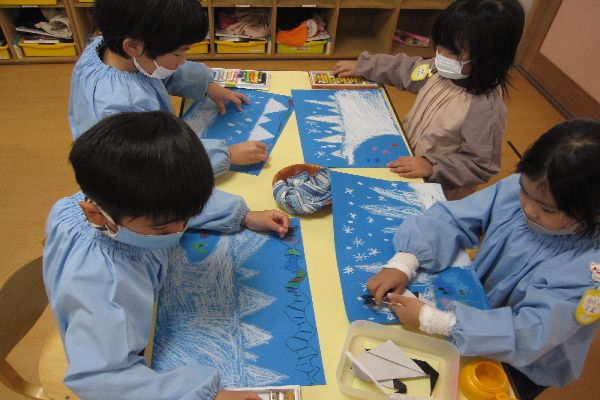 楽しく遊んでいるようにペンギンの親子も貼りました♡