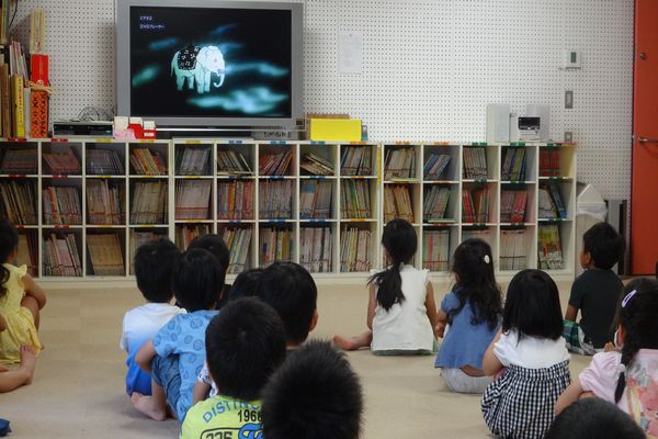今日は室内の換気と子供同士の距離に気を付け、年長組で最初の「お誕生」を見ました。