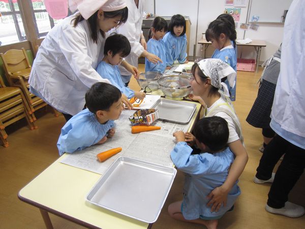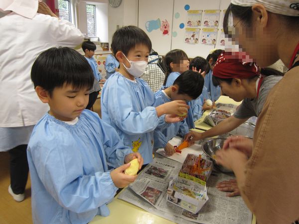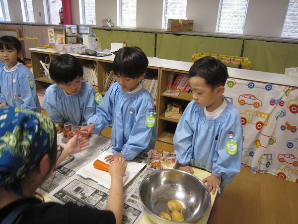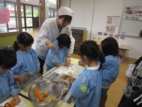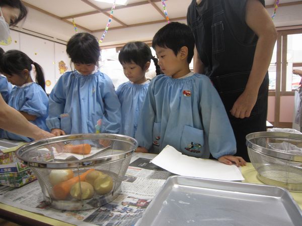野菜の皮を向いたり、包丁で切ったり、頑張っています★