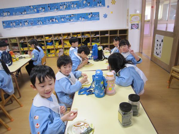 お釈迦様がお悟りを開いた日が成道会と言い、ペープサートを見ました。