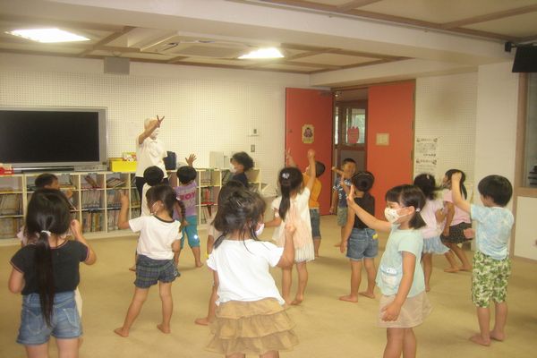 新しく体のパーツ(頭・肩・目など)を教えてもらい、歌を歌いながら楽しく覚えました!