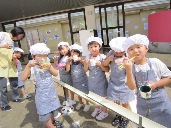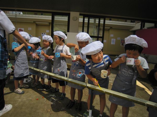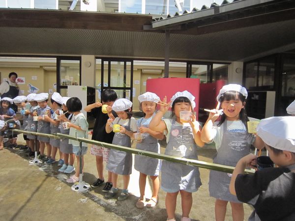 そうめん、トマト、パイナップルが流れてきて子どもたちも喜んで食べていました♫