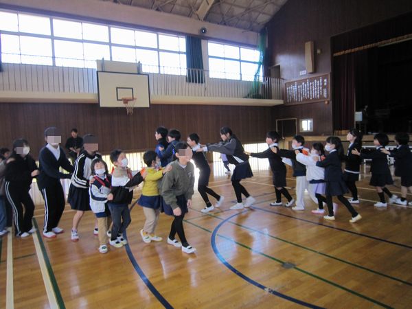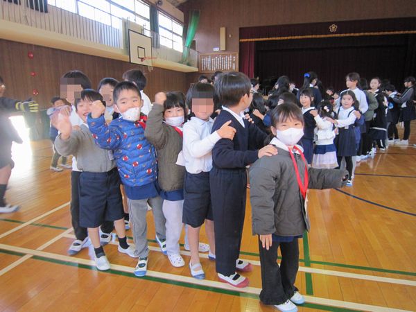 その後は、体育館に移動して1年生の歌と踊りの発表を見せてもらったり、5年生とも一緒にじゃんけん列車と猛獣狩りをして遊びました☆彡