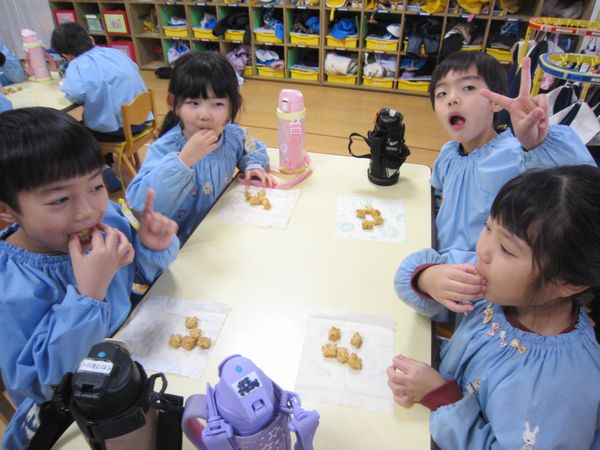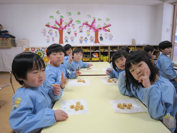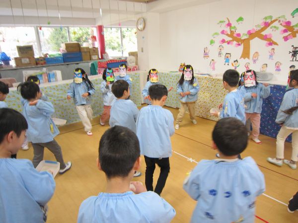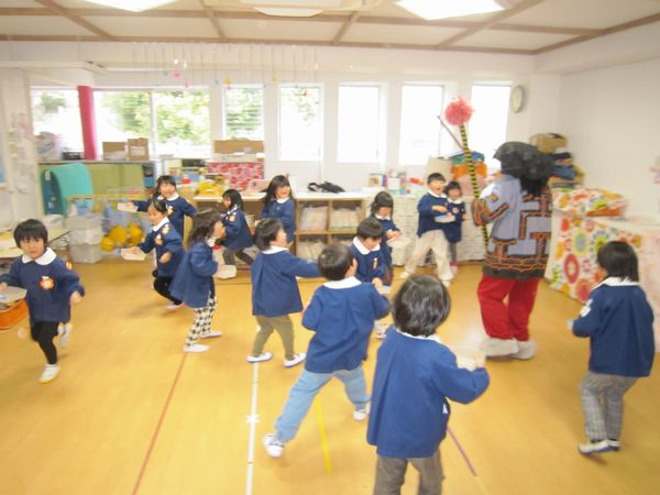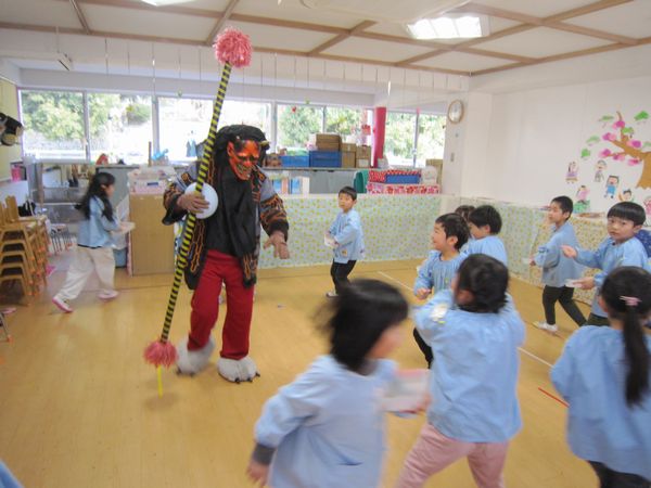 本当の鬼がきても一生懸命豆を投げていました!少しドキドキもしたけど、無事にみんなで鬼退治できたね~☆彡ほっとした様子で「もう一回したい!」という子もいました!