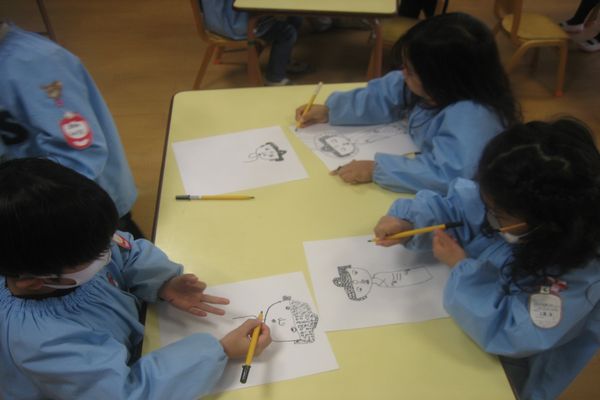 いつもみんなの事を見守ってくださっている「あみださま」の絵を描きました。
