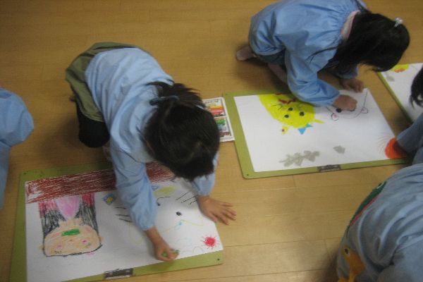 大きな画用紙に自分の〈すきなもの〉の絵をクレパスで描きました!