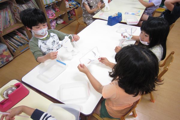 ストローをくるくる回すと、前回りをしたり、回す方向を変えると後ろ回りになったりしてみんなとっても楽しんでいました☆
