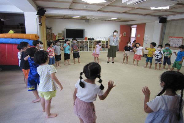 今日は英語遊びがありました! 歌に合わせて体を触る遊びをしました! とってもたのしかったね♪