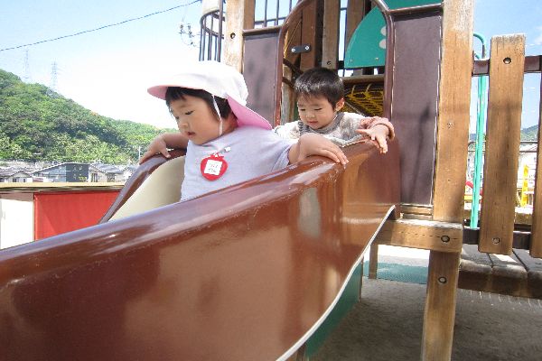今日も、元気にいちご組さんが登園してきました!保育室に入って好きなおもちゃで遊び、おやつの後で外で遊びました!気持ちいい風が吹き、すがすがしい天候だったので、いちご組さんもご機嫌でした♪すべり台や、砂場でたくさん遊びました!