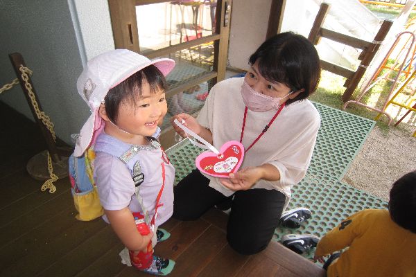 日曜日は母の日です!いちご組さんも、おかあさんにプレゼントを作りました。お迎えにきてくれたおかあさんに「はい!どうぞ!」と、渡せました。よかったね!