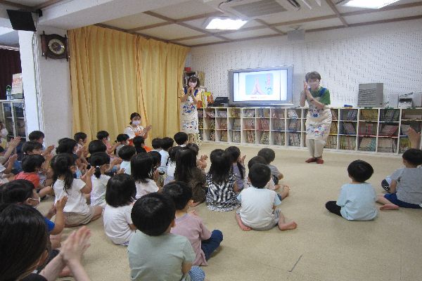 今日は花王の会社の人が来園され、手洗い教室をしてくださいました!