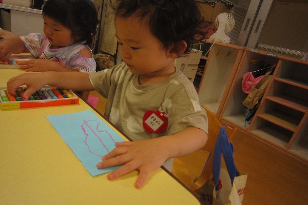 水遊びの後は・・・今日はたなばたの短冊を描きました♪願い事がかなうといいなあ!(^^)!